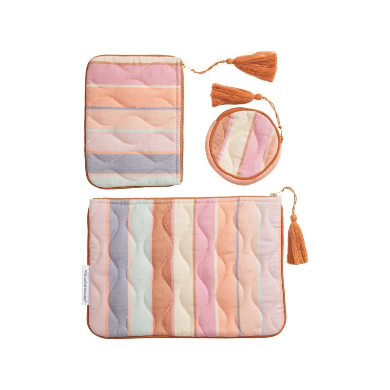 Keep your essentials organised in style with this set of three perfectly practical pouches. Whether you’re toting your collection on the go or sorting out your bathroom storage, there’s a safe and secure place for everything.