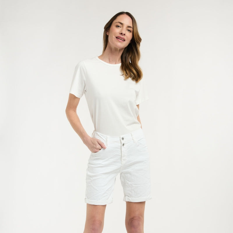 Introducing the Emma Shorts, the must-have addition to your summer wardrobe. Evolved from the popular Emma Jeans, these shorts offer comfort and a perfect fit in a playful style suitable for warm days. Crafted from super stretchy fabric, they ensure ease of movement, while an elastic waist at the back provides a relaxed, snug fit. The classic button and zip fly offer timeless appeal, making them easy to wear. Ideal for picnics, getaways, or relaxing at home, these versatile shorts pair perfectly with your favorite tops and sandals for a chic look.