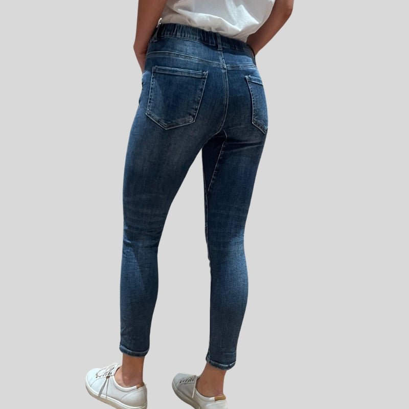 Achieve fabulous style that looks good and feels great with the Emma Stretch Jeans! Enjoy the perfect blend of comfort and fashion whenever you slip into these stylish jeans. Crafted from a 98% cotton and 2% elastane blend, they’ll hug your body just right, with the elasticised back waist allowing the perfect fit wherever you are. Easily combine versatility and chic with a high mid rise and relaxed fit. Don't forget to show off those killer curves in this stunning mid blue denim color, complete with rip detail for an edgy finish. It's time to show off your fabulous side every day of the week with the Emma Stretch Jeans!