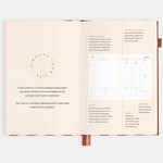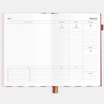 208 pages. One week per spread and monthly spreads at the beginning of each section. Gold foil stamped linen cover with gold foil edging. Three grosgrain ribbons in rust, blush and cream.