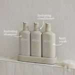 Featuring a luxurious blend of naturally derived ingredients and native botanical extracts, our Hydrate Hair and Body Trio effortlessly hydrates hair while leaving skin nourished, and the senses revitalised. This all-encompassing set seamlessly brings together your shower essentials in a perfectly neutral stone shade designed to look at home in any bathroom.