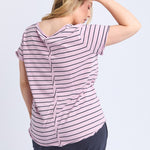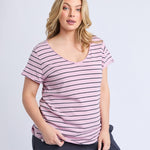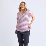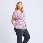 Elm | Pima Vee Tee - Dusk Pink/Navy Stripe