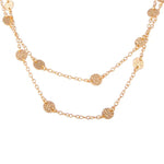 This charm necklace comprises mini hand beaten round discs. Designed to be worn long or doubled over for a shorter length,  this necklace is versatile and stylish.
