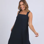 Easygoing with a playful twist. The Lourdes Dress features a relaxed fit with an open back, layered underlay, and a sweet back tie detail that brings the charm. Light, floaty and full of personality this one's made for warm days and fun plans.