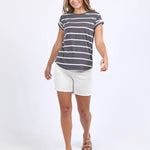 Foxwood | Manly Stripe Tee - Charcoal/White Stripe