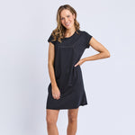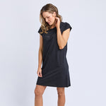 Cute Tee Dress in a light weight vintage washed 100% cotton jersey topped off with a Foxwood Signature logo on the chest. Great for everyday wear!