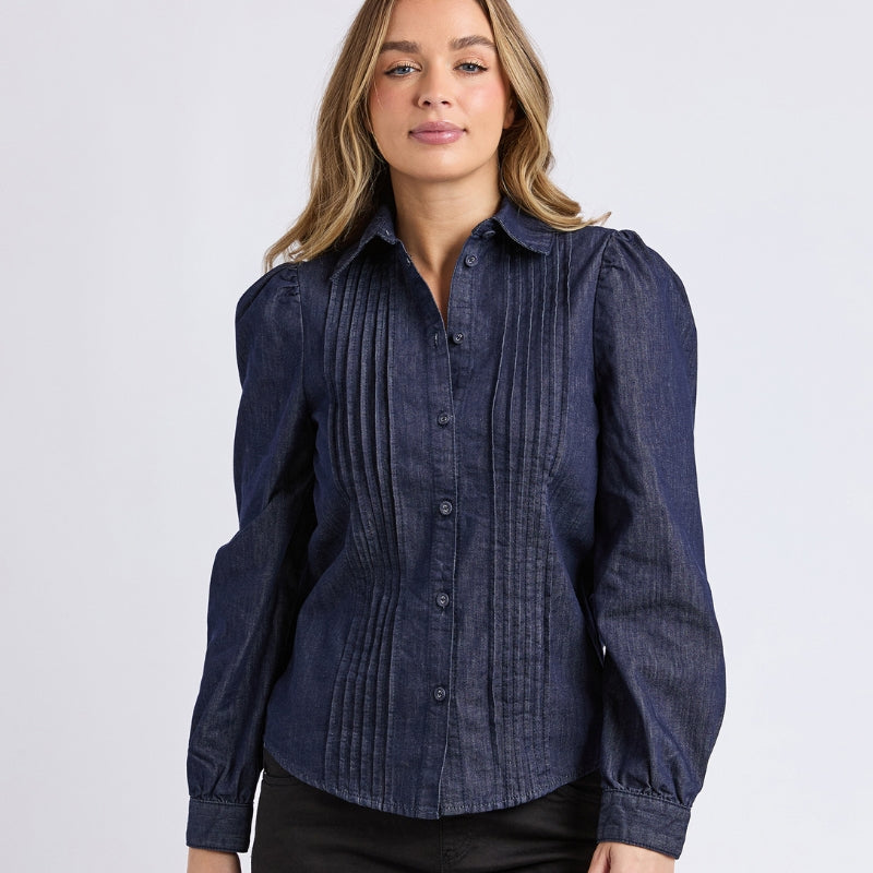 A little drama, done just right. The Poppy Shirt features delicate pintuck detailing through the front and soft puff sleeves that add shape without feeling fussy. Finished with a classic button-through front, it’s an easy way to elevate denim, tailored pants or a midi skirt. Polished enough for plans, relaxed enough for everyday wear.