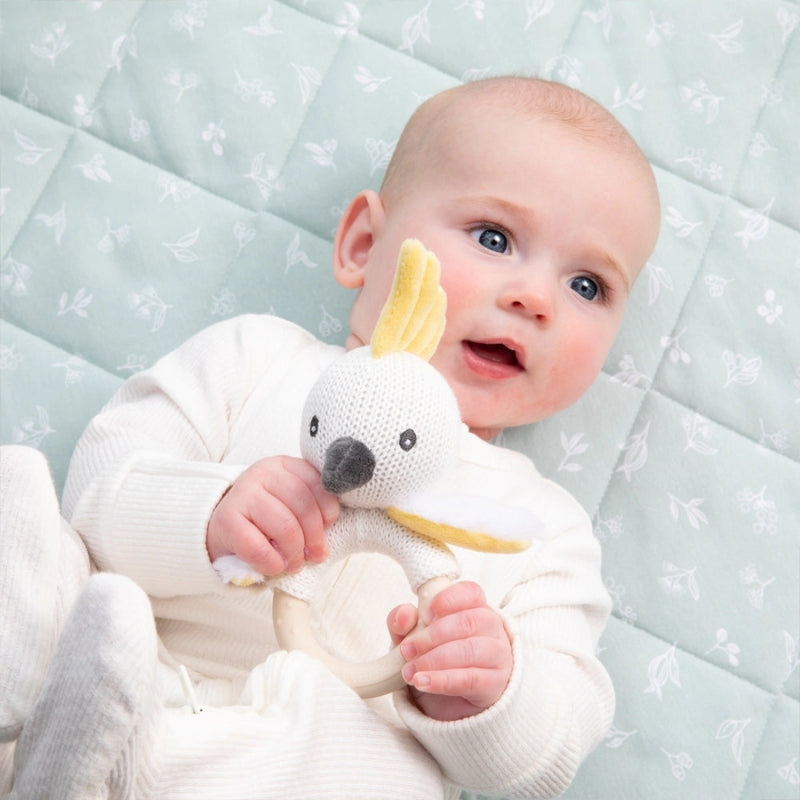 Living Textiles | Knitted/Silicone Ring Rattle - Cockatoo