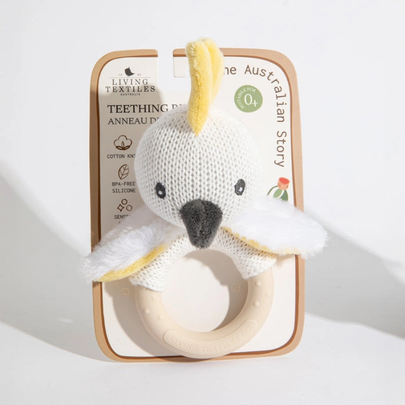 Living Textiles | Knitted/Silicone Ring Rattle - Cockatoo