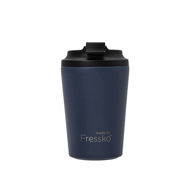 Available in 8oz and 12oz, Fressko coffee cups are vacuum sealed, scratch-resistant, have a spill-proof, screw-in, easy to clean, no fuss, lockable lid and internal barista lines.