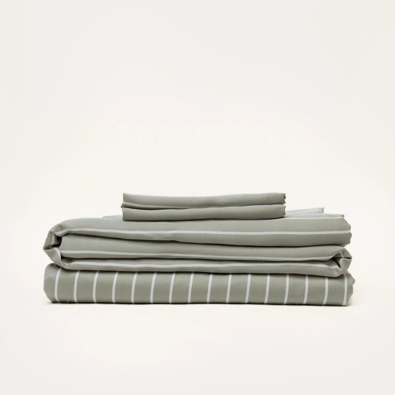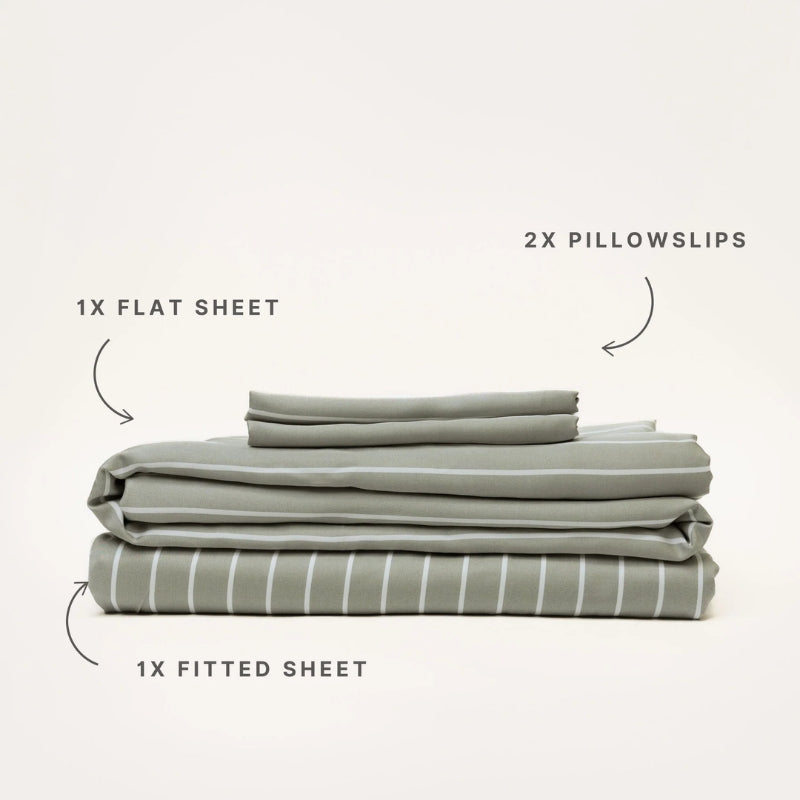 Mulberry Threads | Bamboo Sheet Set - Olive Stripe
