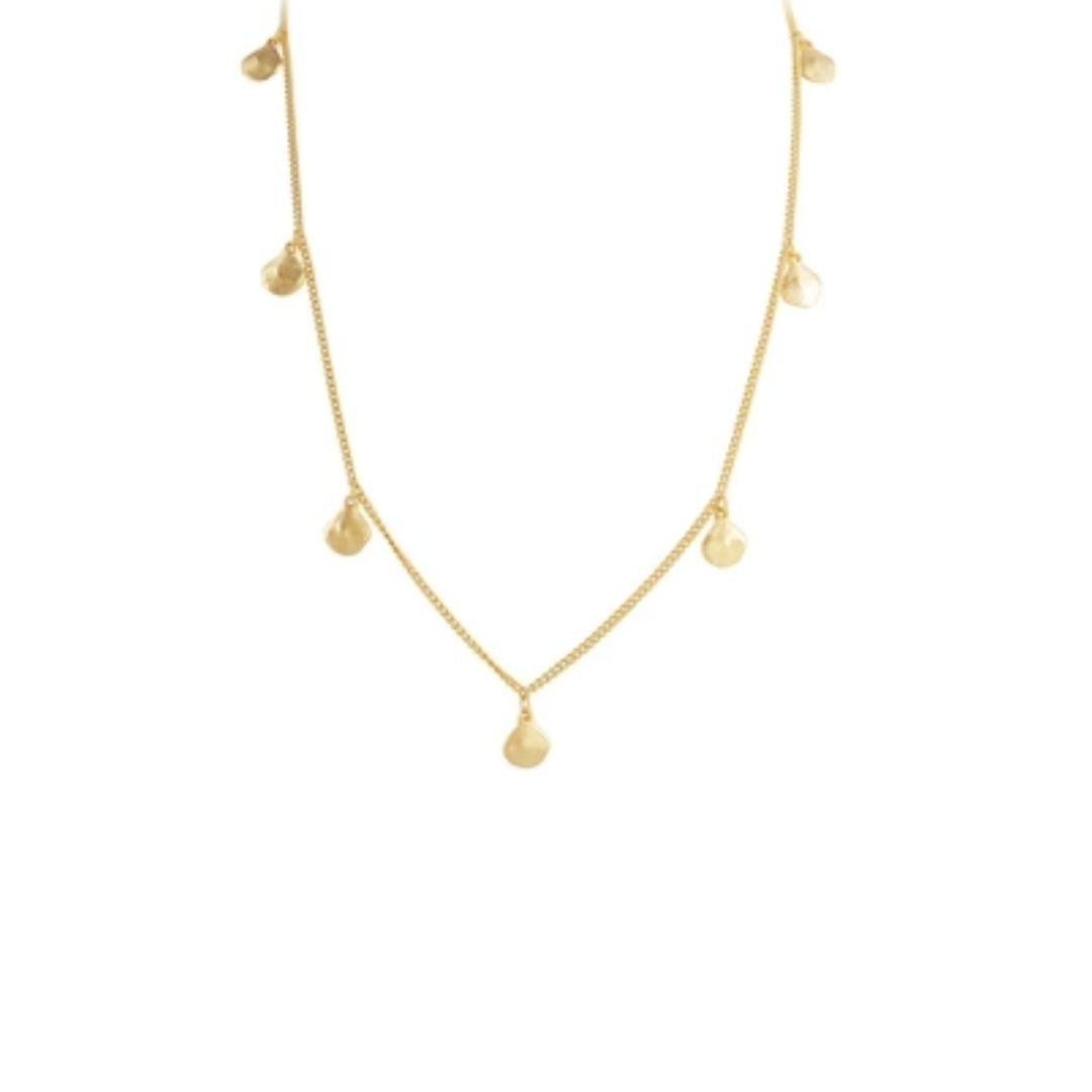 This season's charm necklace, features 10 polished hammered discs. The 10 discs convey a message of renewal and hope. A meaningful statement necklace for the luxe traveller.