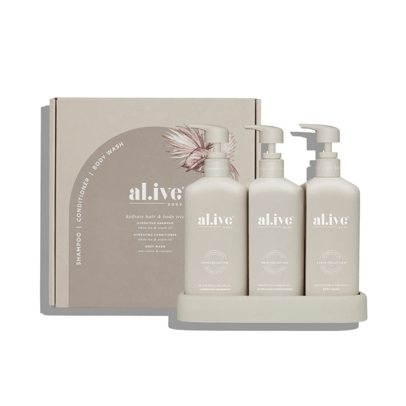 Created with conscience, our Hydrate Hair & Body Trio is formulated without silicones, sulphates and palm oil.