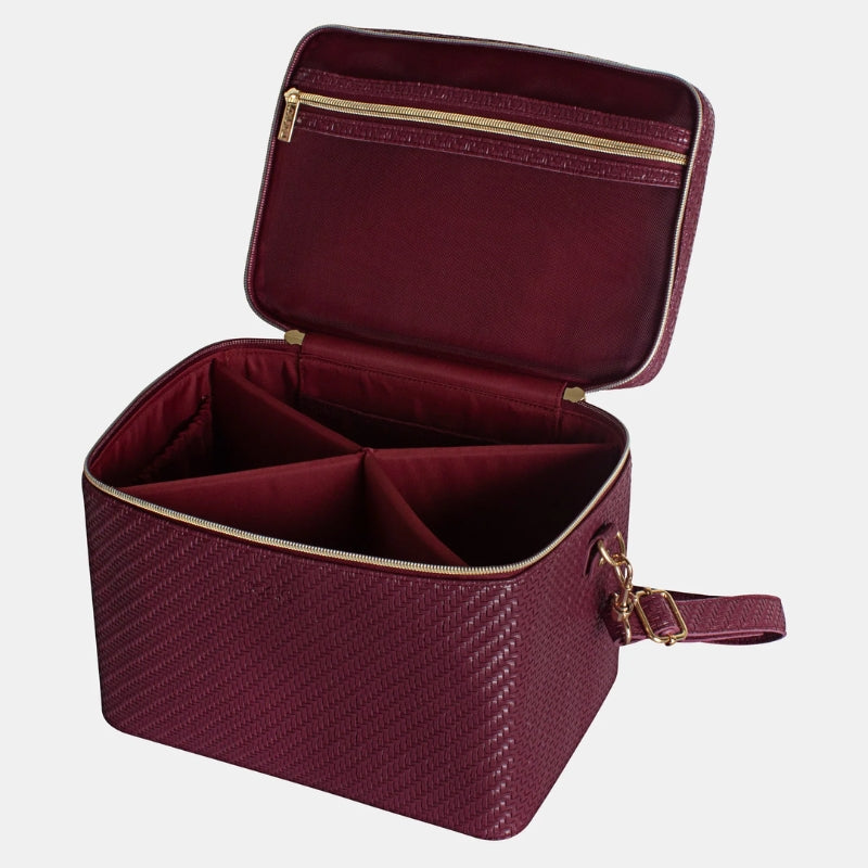 Based on a classic train case design, this travel toiletry case boasts a tall and deep design, allowing you to keep your beauty essentials upright and easily accessible. The internal zipped mesh pocket on the lid keeps smaller toiletries and makeup within reach, while the internal divider helps compartmentalise cosmetic products.