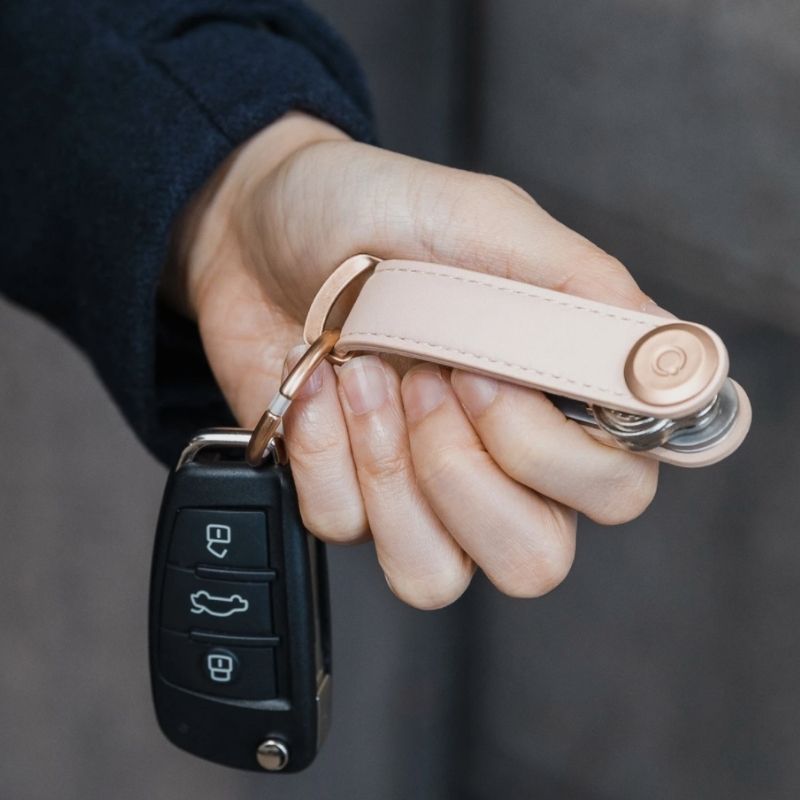 Orbitkey | Leather Key Organiser - Stone/Grey Stitching