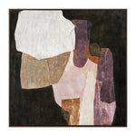 Chiaroscuro I Canvas Art Print - A quiet interplay of form and texture, this abstract wall art print layers organic shapes in warm, earthen hues. Deep browns, soft neutrals, and muted mauves unfold like weathered stone against a black backdrop, creating a composition that feels both grounded and ethereal. Bold yet understated, it brings a sense of balance and depth to any space.