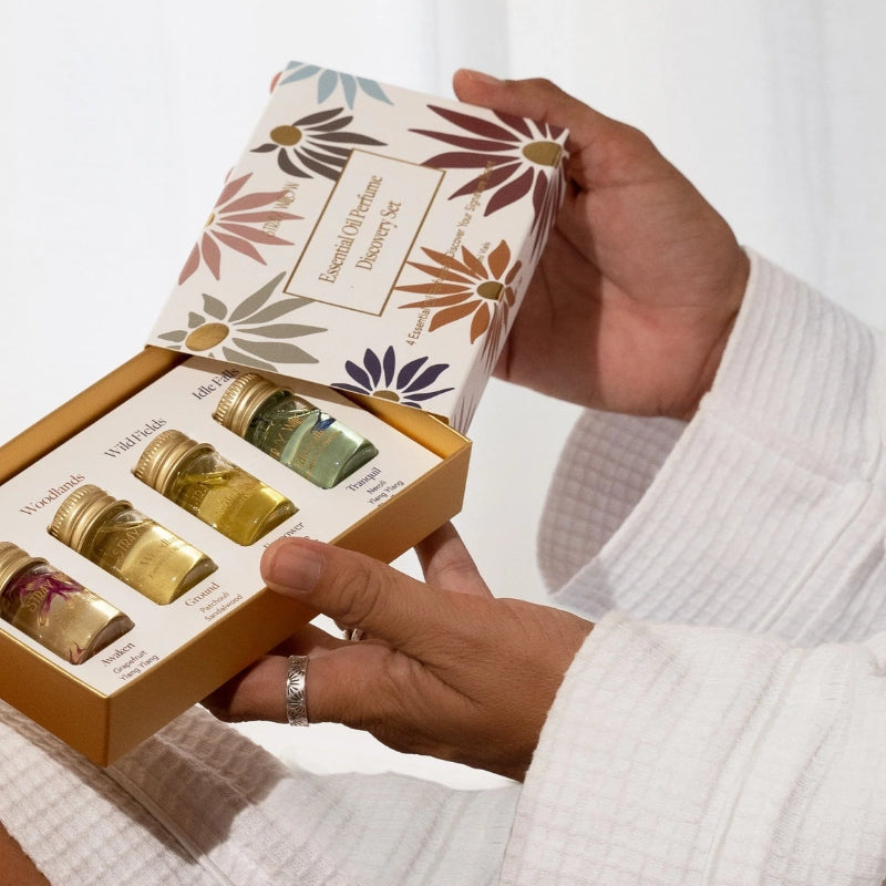 Discover a curated collection of four miniature scents to indulge your senses and inspire your journey of self-expression. Each mini perfume is crafted with 100% natural essential oils, letting you explore and embrace the art of scent in its purest form.