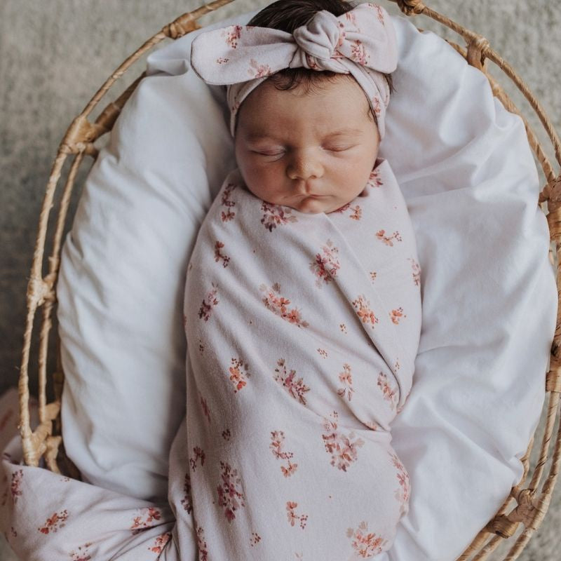 Snuggle Hunny | Baby Jersey Wrap & Topknot Set - Esther