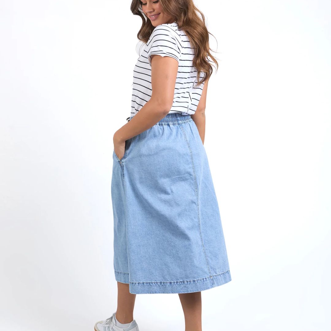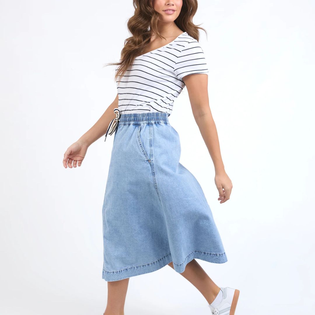 Inspired by our best-selling Greta Wide Leg Pant, the new Greta Skirt in mid-weight rigid denim is easy to wear and is ideal for those who prefer a denim skirt instead of jeans! Featuring a wide elastic with a drawstring waist for extra comfort, you’ll reach for this skirt repeatedly.