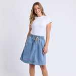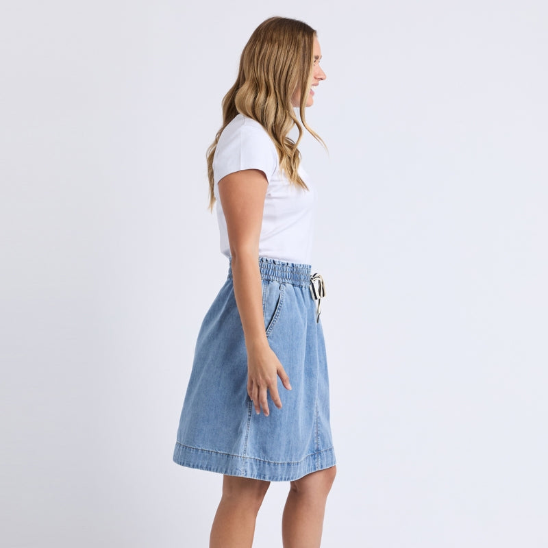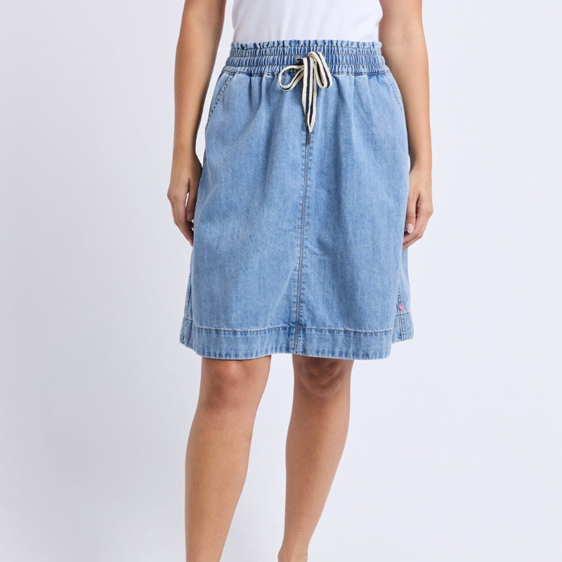 The Paisley Denim Skirt brings a fun, easy take on everyday style with its light blue denim and relaxed feel. Inspired by the much loved Greta Skirt, this shorter version keeps things comfortable with a wide elastic waistband and a soft drape that moves with you. It’s casual, classic and wonderfully simple to wear, making it an instant favourite for warm weather days.