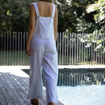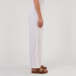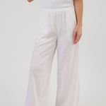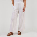 Ankle length wide leg relaxed fit pant with fully elasticated waist, side seam pockets and one back patch pocket.