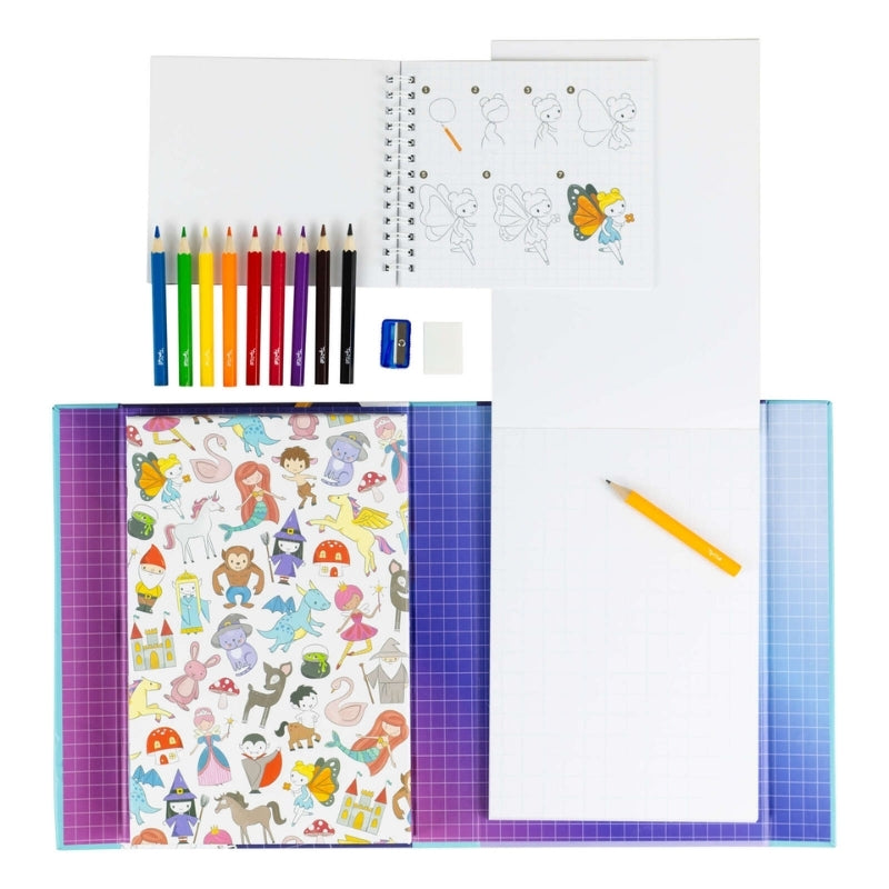 All-in-one activity set teaching kids how to draw fairytale fantasy characters