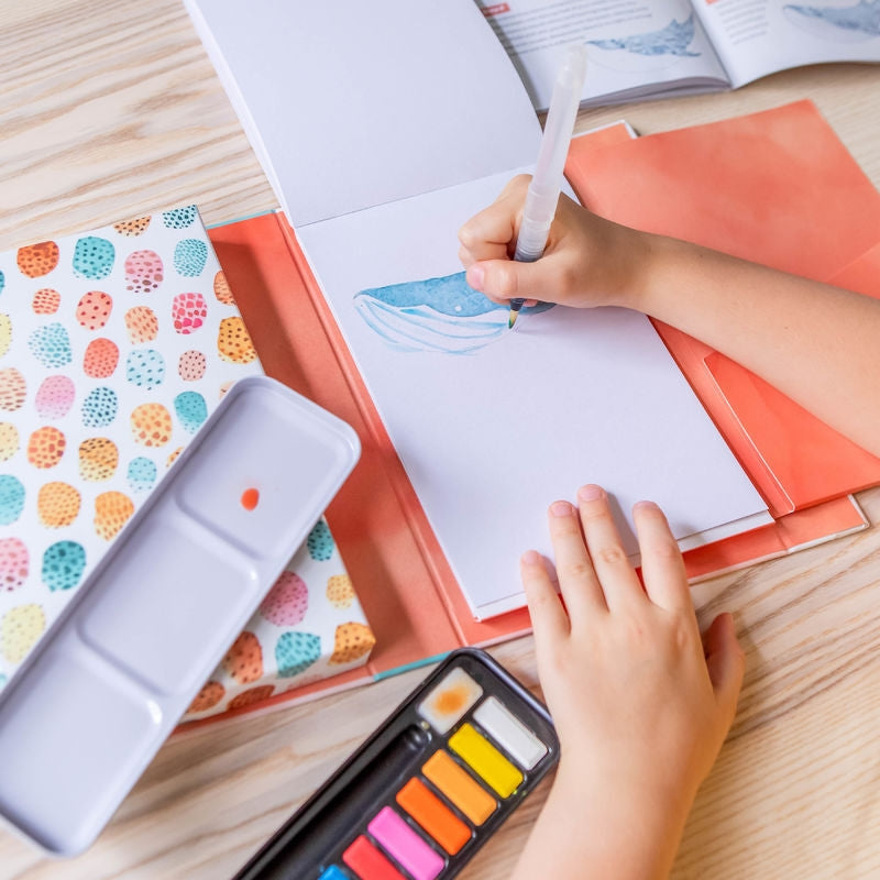 To help you get started an outline sketch of each animal is provided on the pages of the watercol-our pad, allowing kids to focus on the painting lessons, including colour blending, mixing colours, wet-on-wet/wet-on-dry technique, layering, textures and so much more!