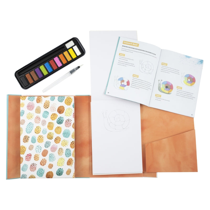 •    Each set includes a full colour, 38 page painting guide, 20 watercolour pages, 1 x waterbrush, 12 x rich pigment watercolours (pan), 1 x small sponge for blending effects, 1 x mixing tray (palette)
