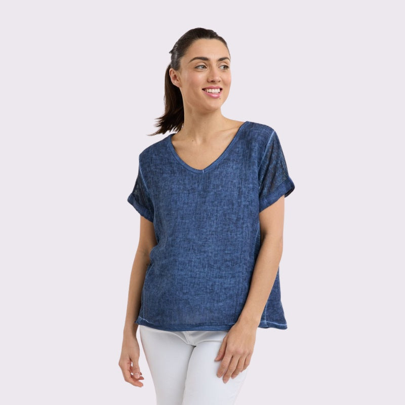 Love From Italy | Calypso V-Neck S/S Top - Navy