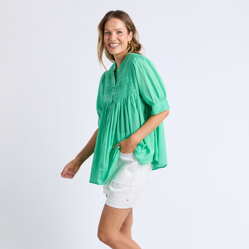 The Monty SS Shirt displays refined pin tuck detailing combined with a full button closure, offering both style and practicality. Its relaxed fit ensures comfort and ease of movement, making it a versatile addition to any wardrobe seeking understated sophistication.