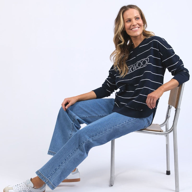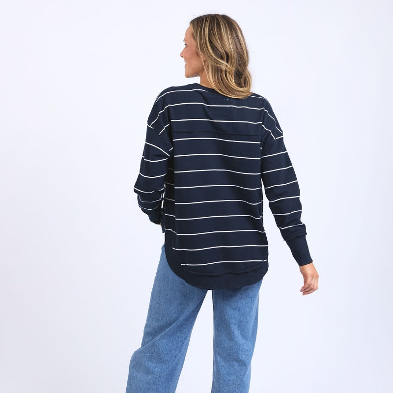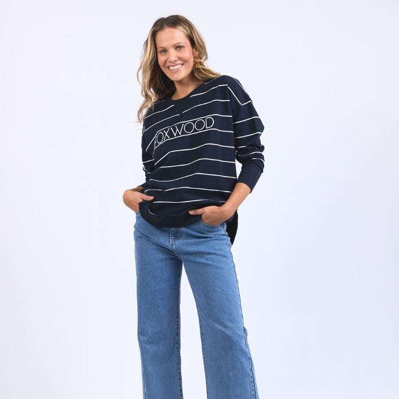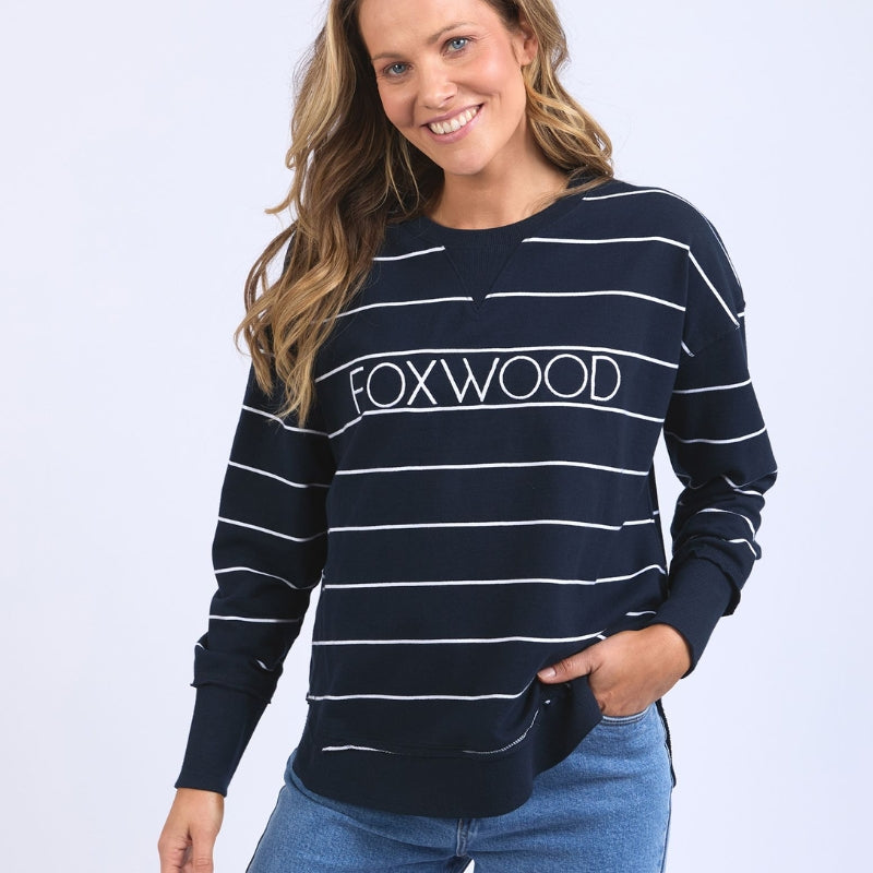 Foxwood | Classic Stripe Simplified Crew - Navy/White Stripe