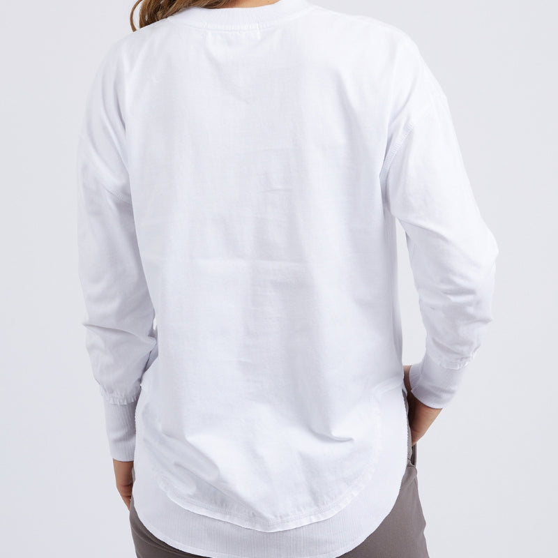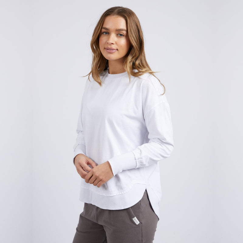 A new crew to the Foxwood range the Farrah Long Sleeve in 100% Fresh Pima Cotton features a classic crew neckline and raw edge detail. This relaxed fit jumper is an easy everyday wear.