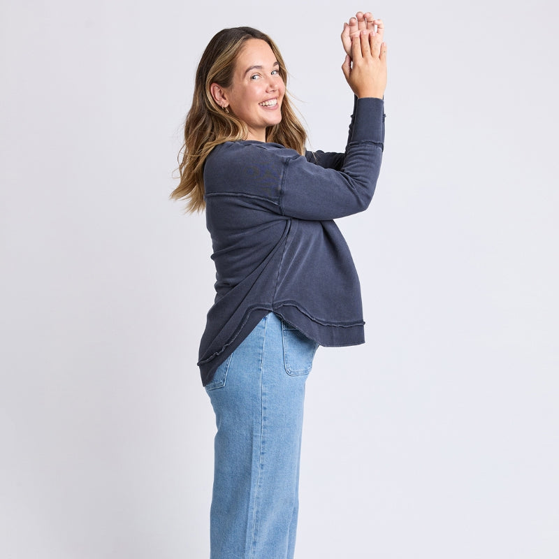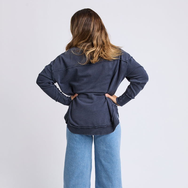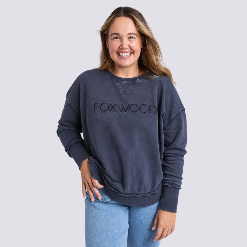 The Washed Simplified Crew is for the Foxwood woman on-the-go. This basic crew features the Foxwood logo embroidered in simple tonal stitching across the front. It's boxy shape and mid-length hemline make it effortless to style and wear.