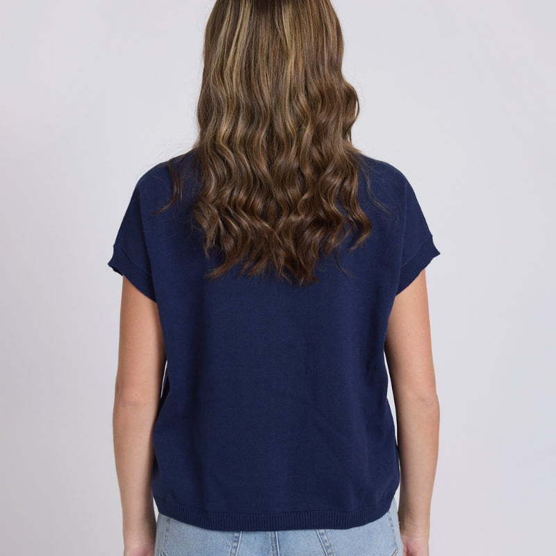 Crew neck basic knit top in jersey knit with fine ribbed trims