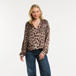 Effortlessly chic, this leopard print blouse features an open V-neck and a flattering longer back hem for a modern, flowy silhouette.
