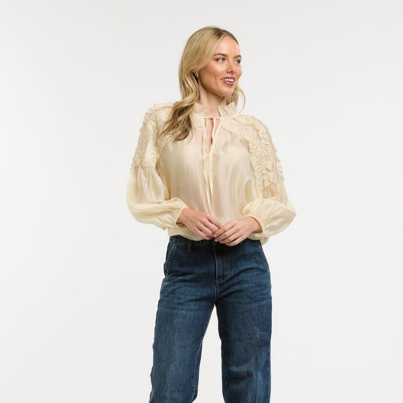 Urban Luxury | Ruffled Tie Neck Blouse - Champagne