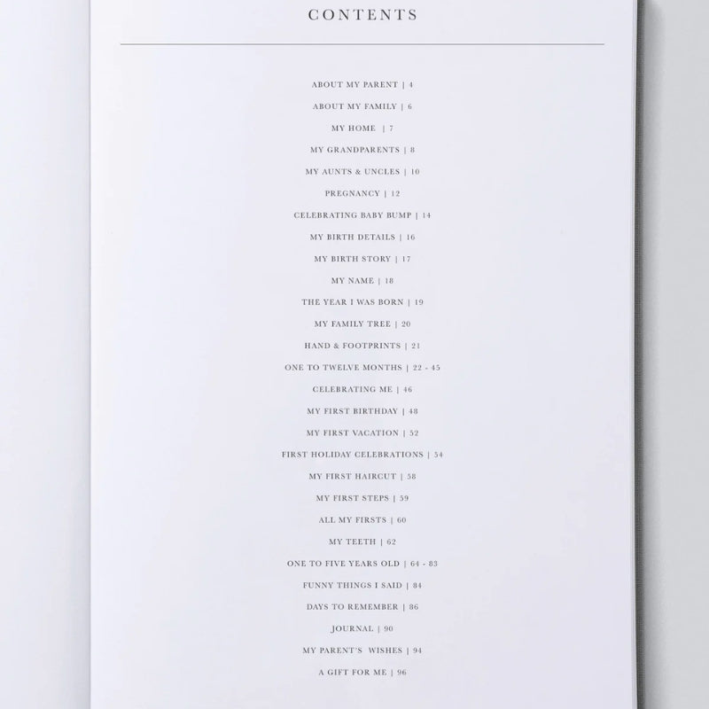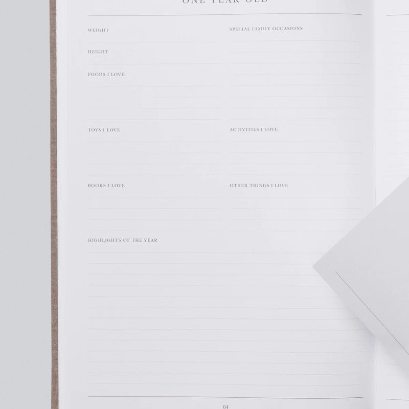 Record the first step, first words, first tooth, first birthday and many more moments with this beautiful linen bound baby journal. With generous space for memories, photos from pre birth through to five years old and gender neutral for baby, parents and grandparents. This guided journal will become a cherished keepsake of a treasured time.