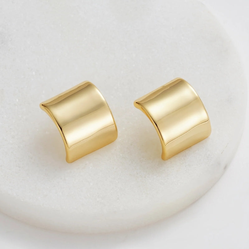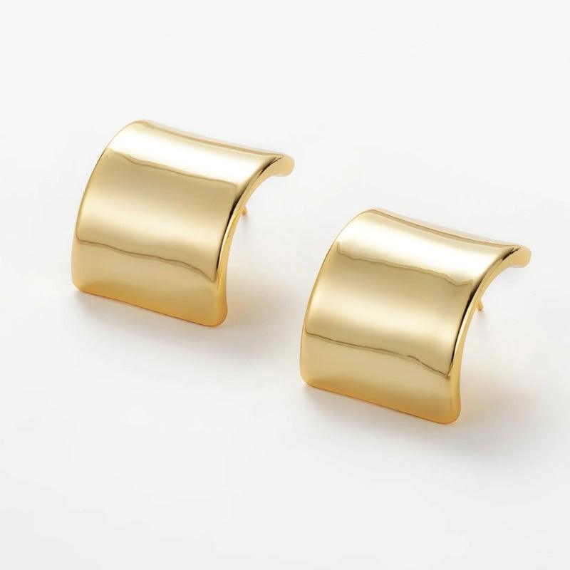 The Aria Earrings are a bold reimagining of the classic stud, designed with a wide, sculptural silver silhouette. Minimal yet striking, these statement studs add effortless polish to any look, from everyday wear to evening styling.