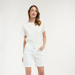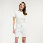 Introducing the Emma Shorts, the must-have addition to your summer wardrobe. Evolved from the popular Emma Jeans, these shorts offer comfort and a perfect fit in a playful style suitable for warm days. Crafted from super stretchy fabric, they ensure ease of movement, while an elastic waist at the back provides a relaxed, snug fit. The classic button and zip fly offer timeless appeal, making them easy to wear. Ideal for picnics, getaways, or relaxing at home, these versatile shorts pair perfectly with your favorite tops and sandals for a chic look.