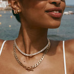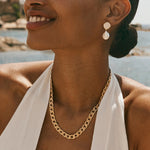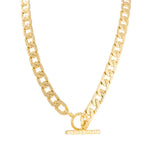 Vintage-inspired with a modern twist, the Antique T-Bar Crystal Necklace is a bold statement piece with timeless appeal. It features a wide antique hammered chain and T-bar accented with two delicate round white cubic zirconia for a subtle touch of sparkle. A modern heirloom designed to shine.