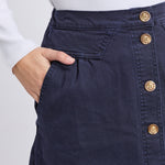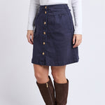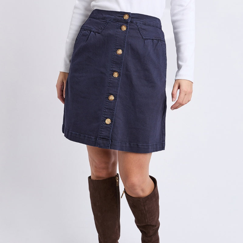 A little bit retro. A lot of cute. This A-Line denim button front skirt is a must-have this season. Featuring side pockets, front tuck detail and an elasticated back, this skirt looks great with strappy sandals and your favourite tee!