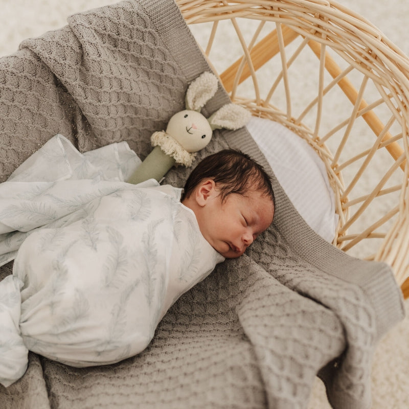 Beautifully knitted with soft, gentle textures and fluffy ears, Nibbles is more than just adorable – this bunny rattle is designed to support your baby’s early development. The easy-to-hold shape encourages grasping, shaking, and sensory exploration, helping to build both fine and gross motor skills through play.