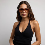 signature szade ; meet our maple tortoiseshell austin, an oversized, 70's inspired aviator sunglass. referencing the classic pilot silhouette, austin offers maximum coverage, light amber lenses and iconic 70s glamour. worn best with your favourite pair of jeans and leather jacket.